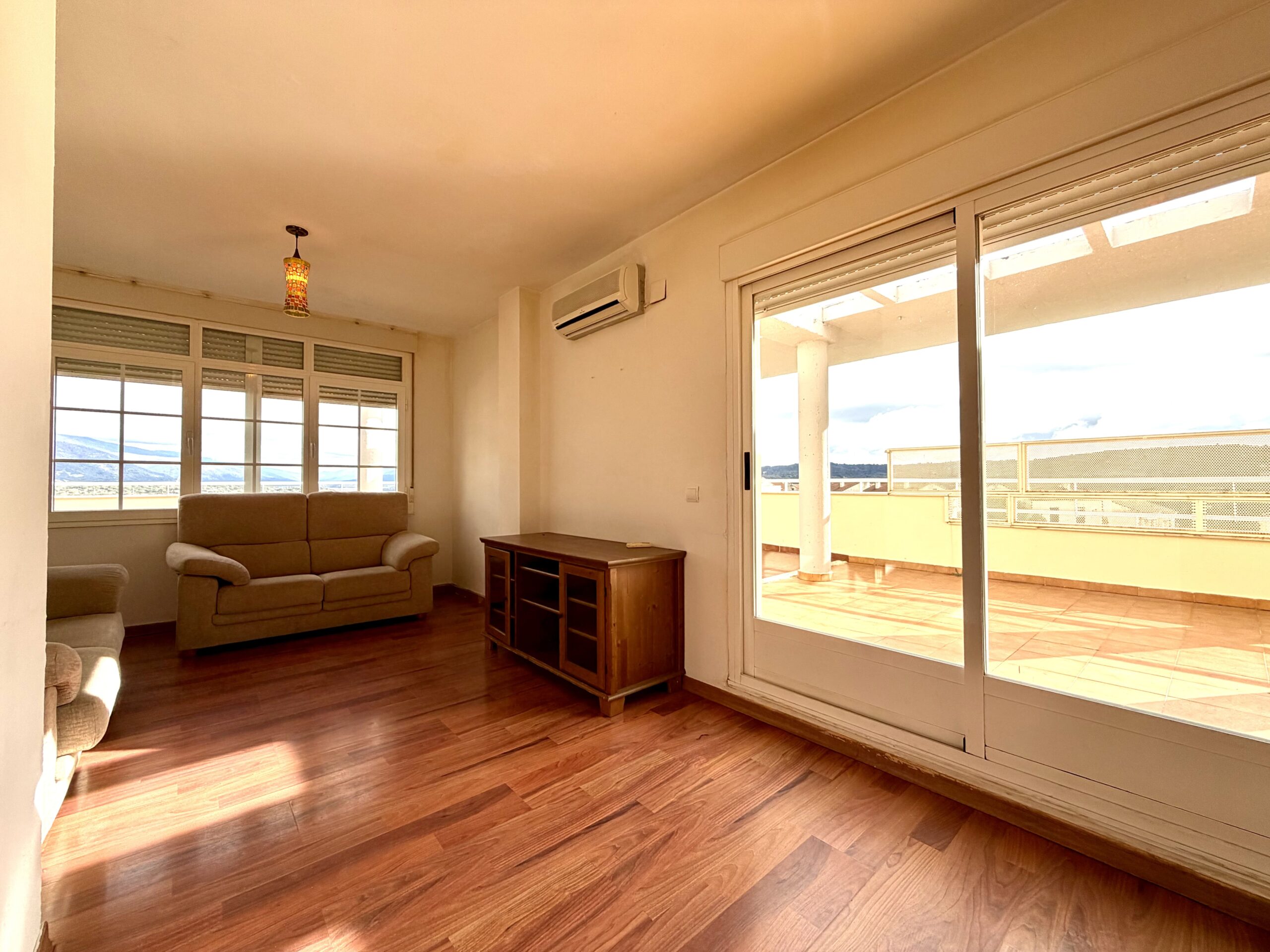 Se vende ático sito en la Avenida Donantes de Sangre, 201 m2. El inmueble se distribuye en salón con acceso a amplia terraza con increíbles vistas y zona de solárium, cocina equipada y espaciosa, también comunicada con la terraza; además cuenta con tres habitaciones, una de ellas con baño en suite, y un baño completo adicional. (Posibilidad de unir cocina y salón). Este ático dispone de ascensor, plaza de parking y trastero. Dispone de calefacción y agua caliente por gas natural, cuenta con aire acondicionado en el salón y la habitación de matrimonio, y dispone de buenas calidades de acabado tanto en ventanas, suelos y baños. Situado en una muy buena zona, muy tranquila y con acceso cercano a supermercados, salidas de la ciudad, zonas verdes, etc.